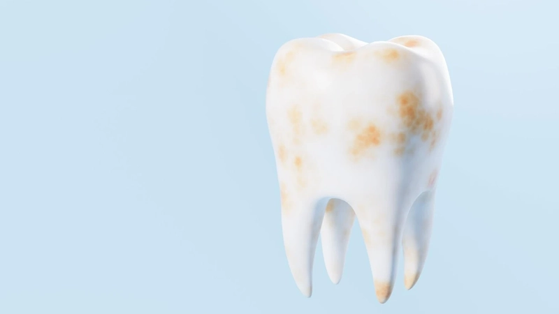 Зубной камень — это затвердевший зубной налёт, который уже невозможно удалить обычной щёткой. Сначала на зубах образуется мягкий налёт — смесь: бактерий, остатков пищи, слюны. Если его вовремя не удалить, он постепенно минерализуется и превращается в твёрдые отложения.