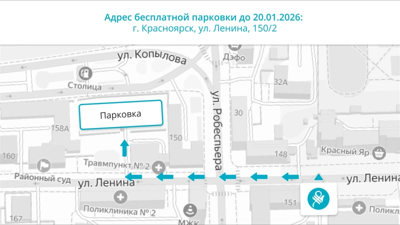 Обращаем ваше внимание на изменения места бесплатной парковки для посетителей клиники.